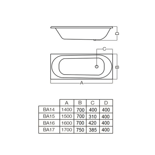 Bañera Atuel 1.50 BN150-B/BA15 en color blanco. Diseñada para ofrecer confort y funcionalidad, esta bañera de acrílico combina un diseño ergonómico y luminoso con instalación empotrable, ideal para baños residenciales modernos que buscan estilo y comodidad. Su formato amplio permite un espacio de baño relajante y elegante. Características principales: